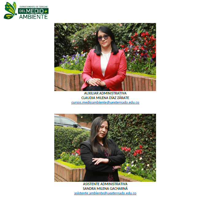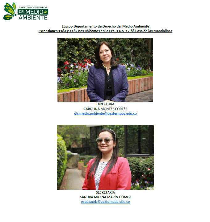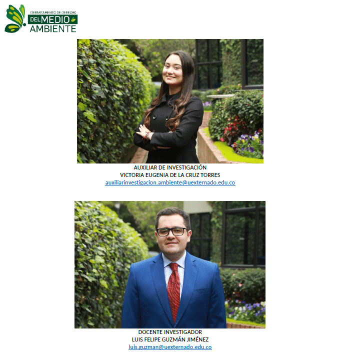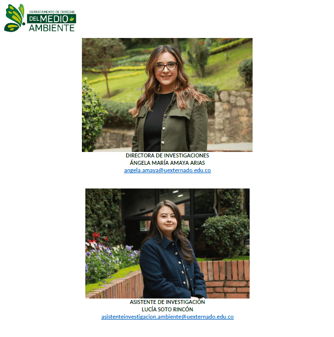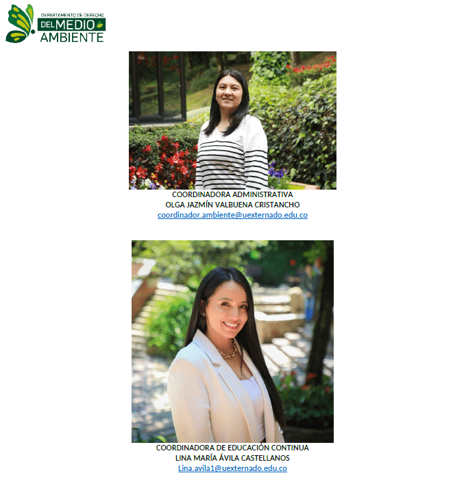 Con satisfacción informamos que estas personas se integran al equipo académico del Departamento de Derecho del Medio Ambiente de la Universidad Externado de Colombia. Su incorporación responde al propósito institucional de consolidar un cuerpo docente altamente calificado, con trayectorias relevantes en los ámbitos académico, investigativo y profesional, y con capacidad para aportar a los desafíos contemporáneos del derecho ambiental.
