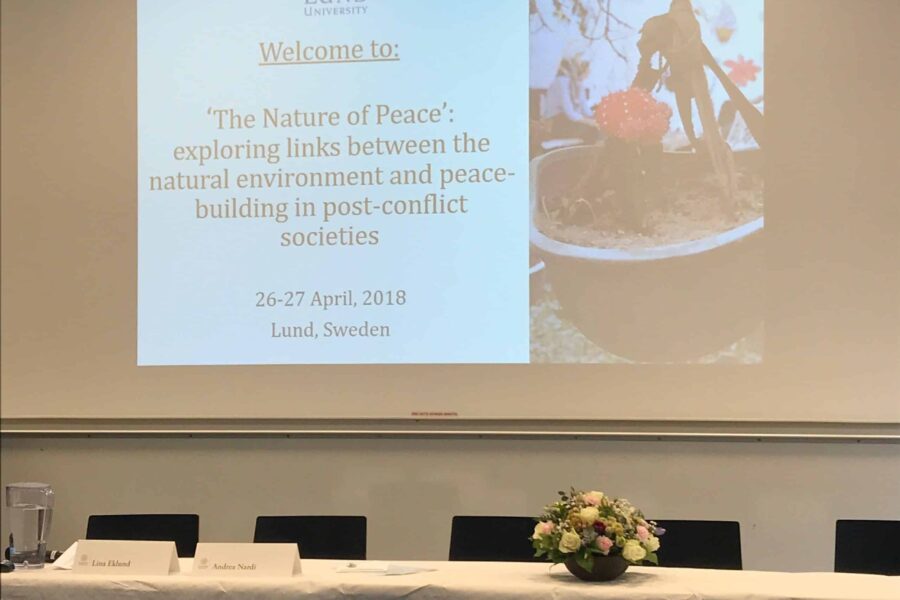 Ángela María Amaya Arias, docente investigadora del Departamento de Derecho del Medio Ambiente, participó en la conferencia “The Nature of Peace Conference”, que se llevó a cabo en la ciudad de Lund, Suecia, los días 25, 26 y 27 de abril del presente año. Esta conferencia fue organizada por el grupo de investigación interdisciplinario “Nature of Peace” del Instituto de Estudios Avanzados de Pufendorf de la Universidad de Lund, Suecia, y tuvo por objetivo analizar el papel del entorno natural en las sociedades postconflicto. La participación de la Doctora Amaya se tituló “Community Forest: A proposal for environmental peacebuilding in Colombia” (Bosques comunitarios: una propuesta para la construcción de paz sostenible en Colombia), tema que hace parte de la investigación que se viene realizando en el marco del Proyecto de Investigación titulado Derecho Ambiental y Construcción de Paz, del Grupo de Investigación en Derecho del Medio Ambiente.